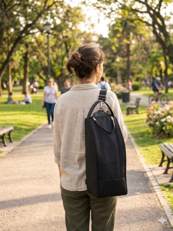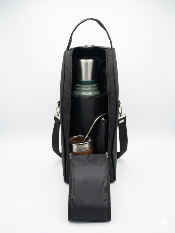 Podés usarla como mochila gracias a su correa desmontable y regulable. Sus medidas permiten llevar termos grandes, incluso Stanley de 1,4L.